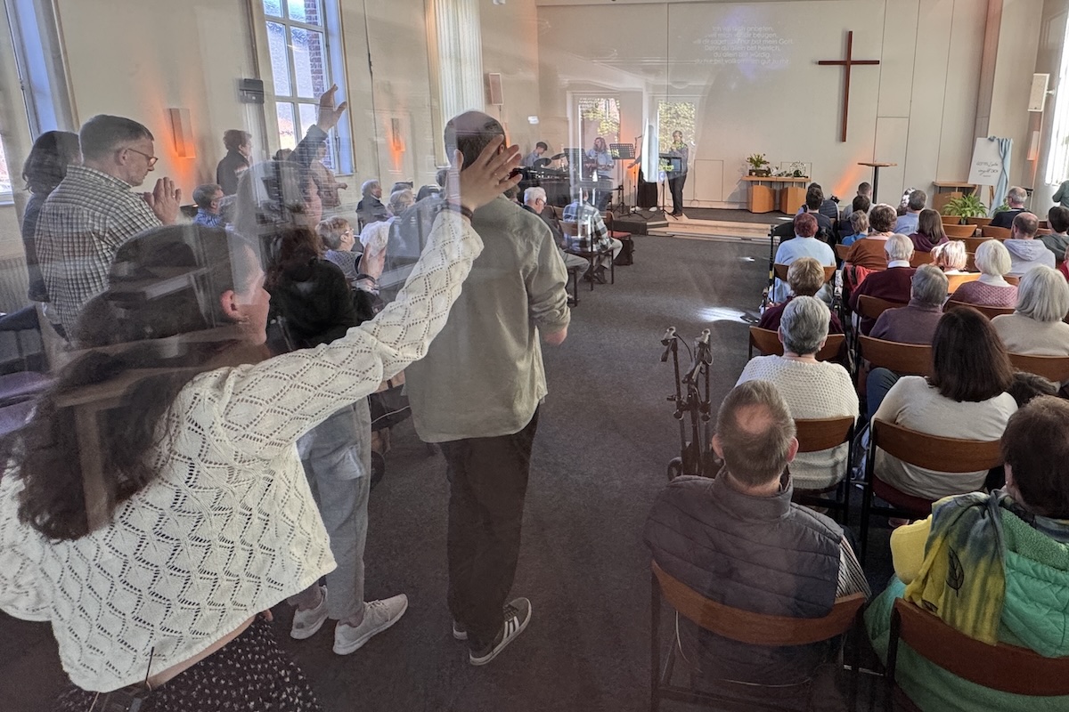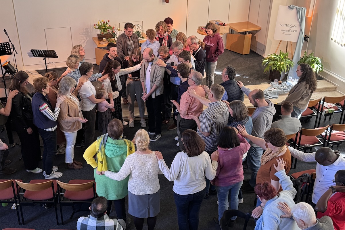 Am Ende des Gottesdienstes vereinten sich viele Besucherinnen und Besucher in einem gemeinsamen Segensgebet. Dieser Segen begleitet ihn nun auf seinem weiteren Weg – und verbindet uns auch über die Entfernung hinweg.